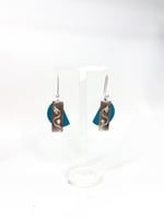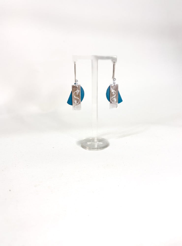 These statement drop earrings are created using beautifully roller textured Silver with granulation detail and blue Formica accent